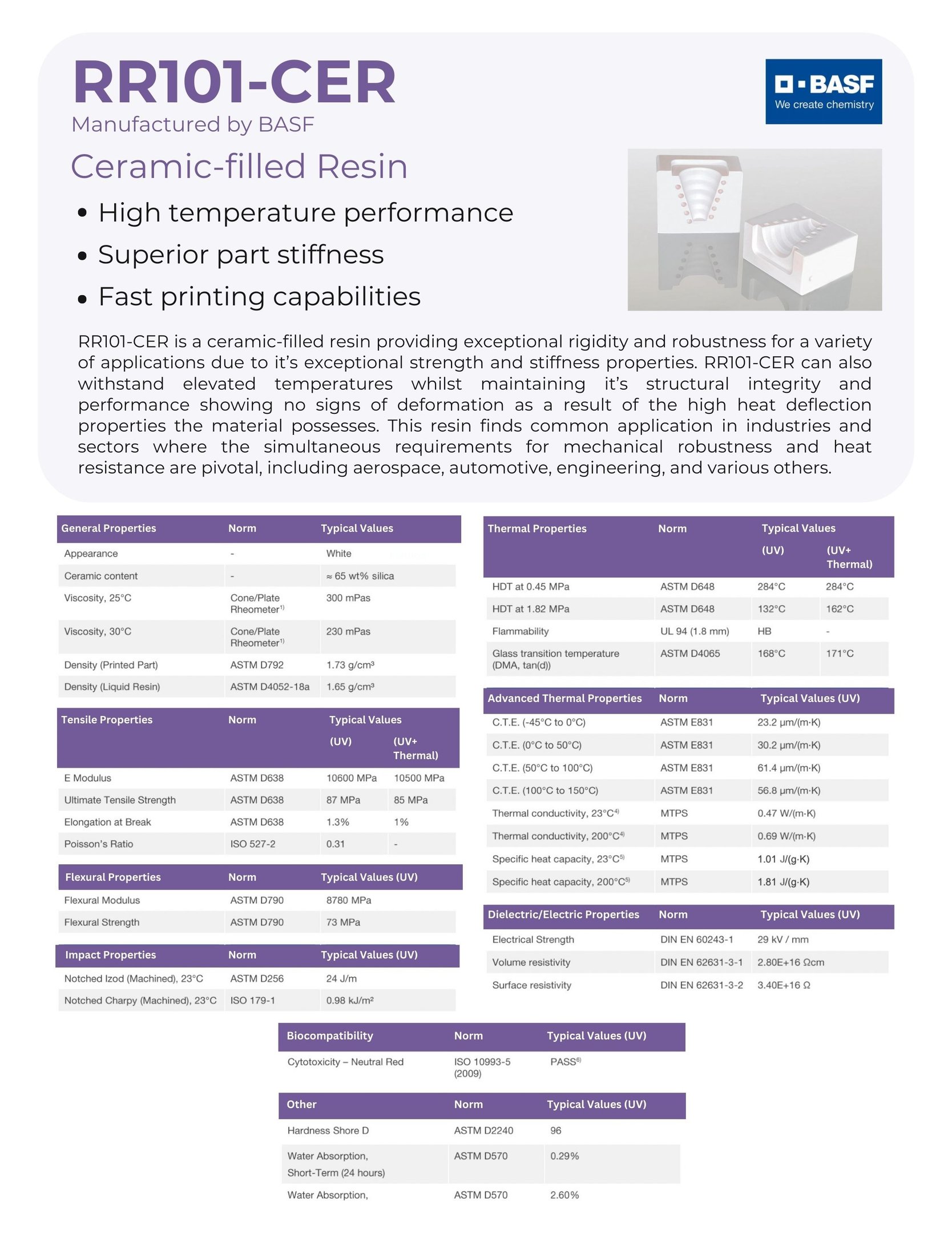 A ceramic-filled resin offering exceptional strength, stiffness, and heat resistance for applications in aerospace, automotive, engineering, and more.