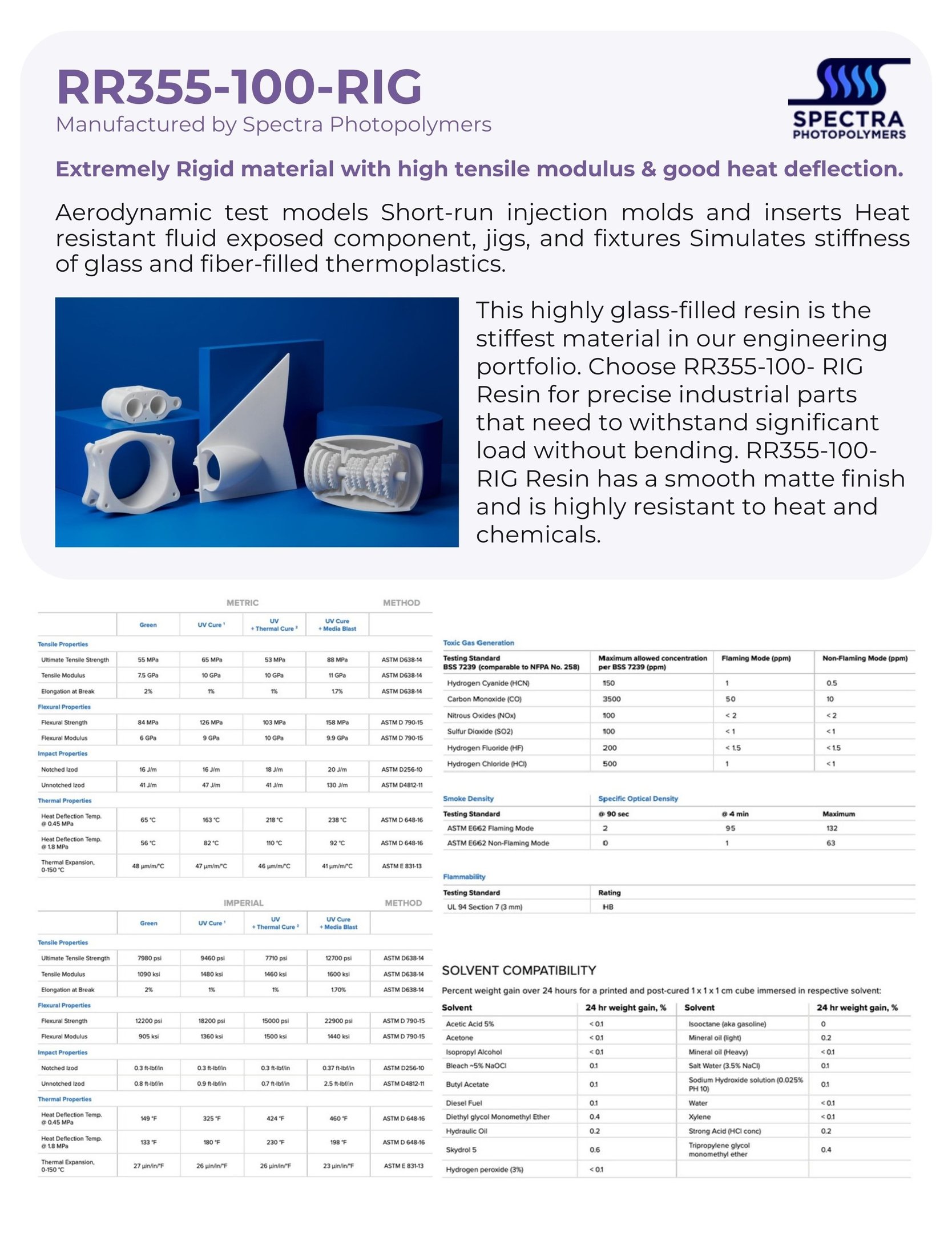 Resin for stiff, durable industrial parts with a smooth matte finish, excellent heat and chemical resistance.