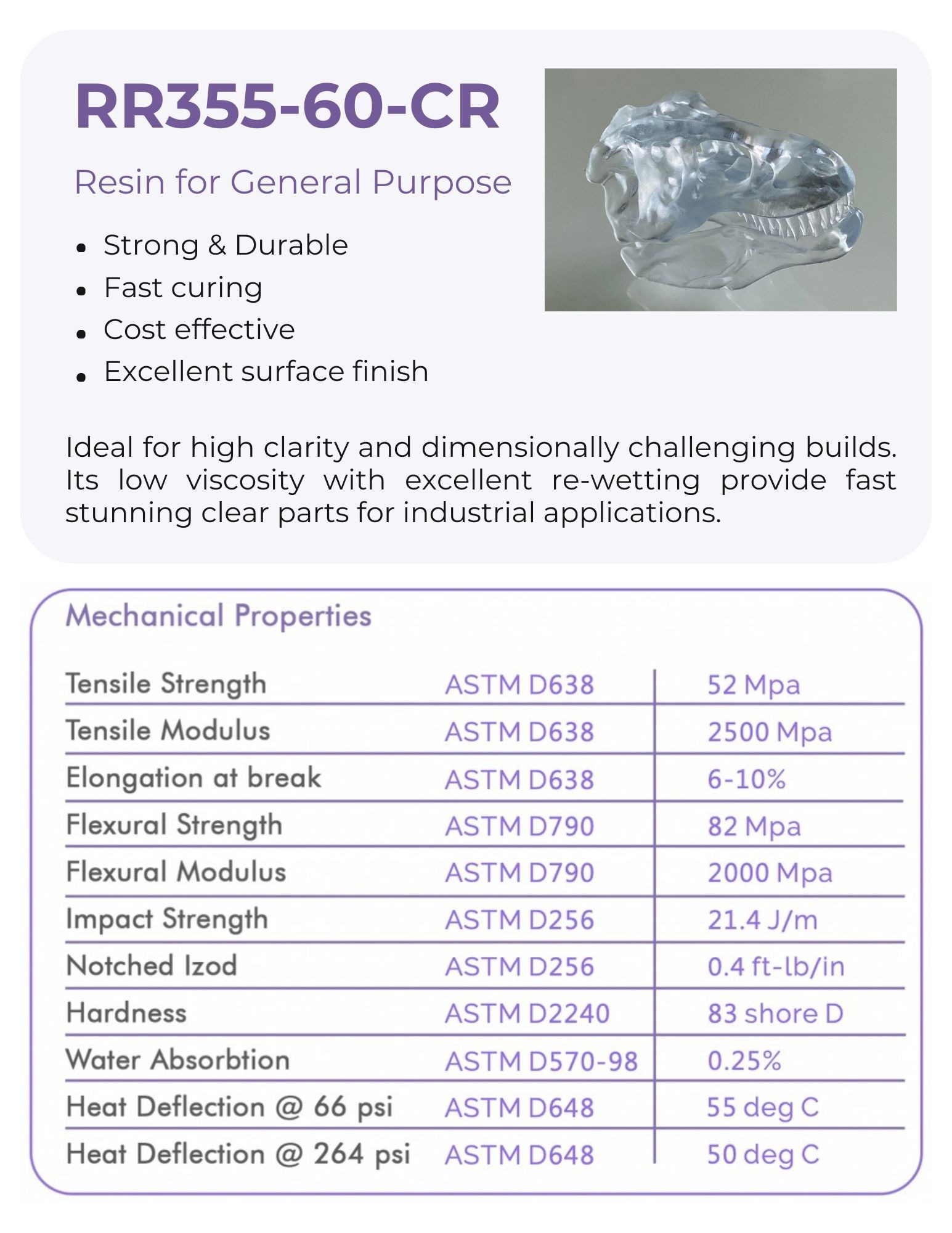 Tailored for demanding builds requiring high clarity and precise dimensions, delivering exceptionally clear parts for industrial applications.